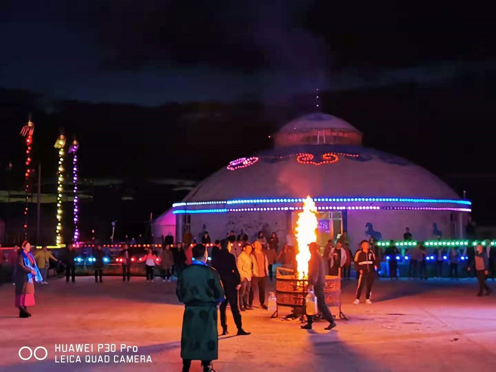 民俗篝火晚會(huì),歌舞表演體驗(yàn),一望無(wú)際的草原、布滿天空的星辰、吃草的牛羊,跳躍的篝火......